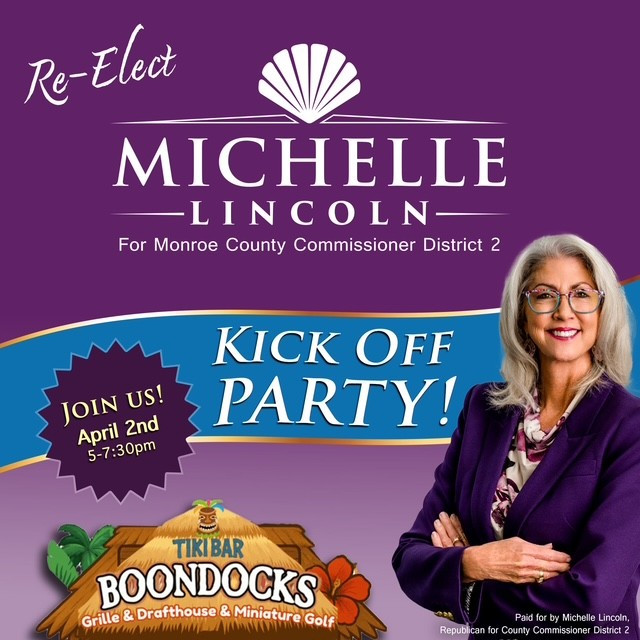 Show your support for our County Commissioner. It’s a party. Michelle Lincoln‘s kick off party at Boondock’s Grille, Ramrod Key, Thursday, April 2nd. |