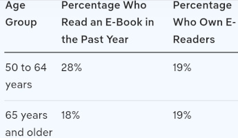 [eBooks] 46% of folks over 50 read eBooks. More will read them when they learn how pleasant it is to read on their phone and more and more other folks get Kindle readers.