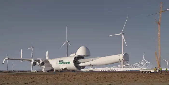The world’s largest plane will transport wind turbines blades and fighter jets. When completed, the WindRunner will stretch the length of a football field. Link