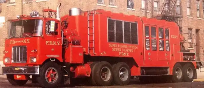 [Soaking Behemoth] The Mack Super Pumper was a locomotive-engined fire fighter that could extinguish hell itself (and often did). In the early 1960s the New York City Fire Department was facing a host of problems. The world around them was growing ever taller, ever more compact, and ever more dangerous with respect to fire. There were times when the very infrastructure that was supposed to be supplying them the water to extinguish a blaze simply stopped flowing, there were other times that the equipment they had proved to be woefully insufficient to stop a fire that should have been controlled, resulting in massive blazes that ate up homes, businesses, lives, and millions upon millions of dollars. Link