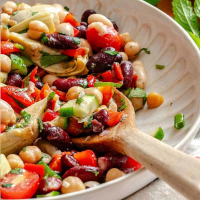 Try different kinds of canned beans and add some chopped bell pepper or cucumber, or both!