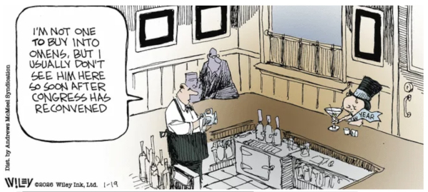 Trump is constrained the same forces as any other president. Is sanity one of those constraints? Trump’s conduct was “demonstrably irrational,” from claiming he had a “psychological need” to own Greenland to the “deranged and delusional” letter he sent Norway’s prime minister, threatening to invade Greenland because “your Country decided not to give me the Nobel Peace Prize.” In a healthier democracy, Trump’s unhinged behavior would be grounds for “impeachment or removal from office under the 25th Amendment.” But in our dysfunctional country, all that decent Americans can do is feel ashamed of our president and our nation. |