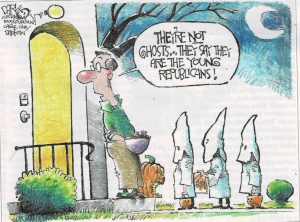 | Last week’s outrageous comment from the Orange King was that Democrats are “terrorists.” Is it because Democrats are more interested in people than profits. |