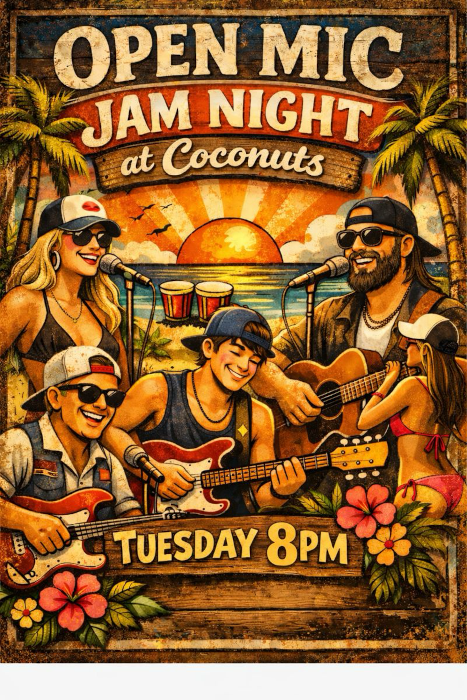[Open Microphone] Ladies and gentlemen, boys and girls, children of all ages…..A new weekly open mic has started at our local watering hole at the light here in BPK. 8PM Hosted by Bob Jangles, Craig, AT, and Flip Flop Bob. Past couple of weeks have been good!!! This week we have a special treat Kid Davis and the Bullets band is in from Philly for a couple gigs and they’re coming out to do a few. Don’t miss this great time!! Your Friend, Flip Flop Bob |