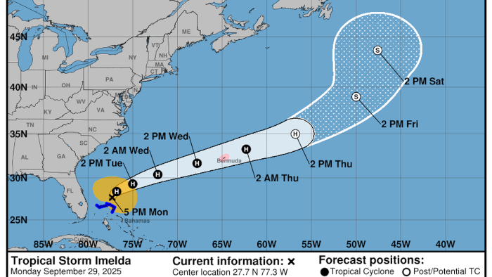Tropical Storm Imelda began to pull away from Florida Monday afternoon, taking its blustery winds and heavy rains with it. |
